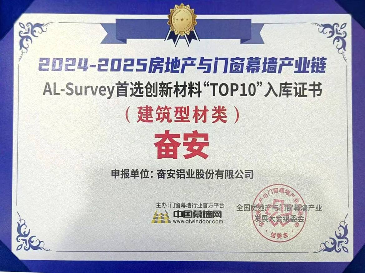 Lista marek AL-Survey dla drzwi budowlanych, Okno i ściana osłonowa Industry odbywa się od 20 edycji od momentu powstania do 2025 r. i ma znaczący autorytet i wpływ w branży drzwi, okien i ścian osłonowych. Menedżerowie ds. materiałów i kosztów, reprezentujący „TOP 20” przedsiębiorstw ścian osłonowych, „TOP 10” przedsiębiorstw drzwi i okien oraz „TOP 10” przedsiębiorstw nieruchomości, przeprowadzają oceny i przyznają punkty na podstawie takich wymiarów, jak jakość produktu i poziom usług. Tymczasem agregowane są również opinie ekspertów branżowych, stowarzyszeń prowincjonalnych i miejskich dotyczące wartości marki i reputacji branży, a także oceny kompleksowych instytutów projektowych i firm konsultingowych dotyczące innowacji technologicznych i dostarczanych rozwiązań.